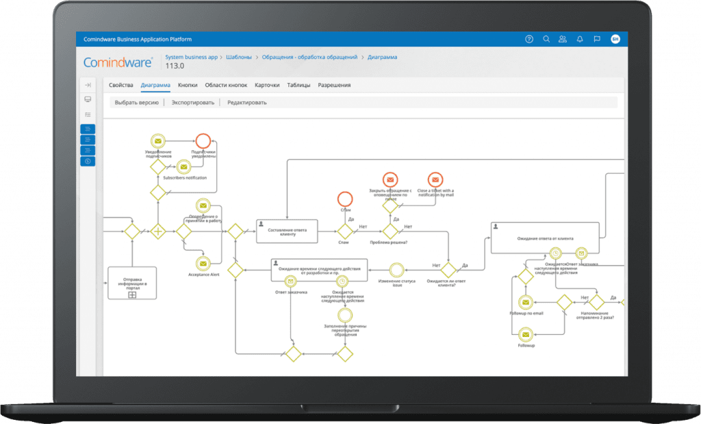 Вы можете заказать демо-версию, чтобы убедиться: наша платформа предлагает понятный дружелюбный интерфейс и много полезных возможностей для построения, описания бизнес-процессов и их анализа.