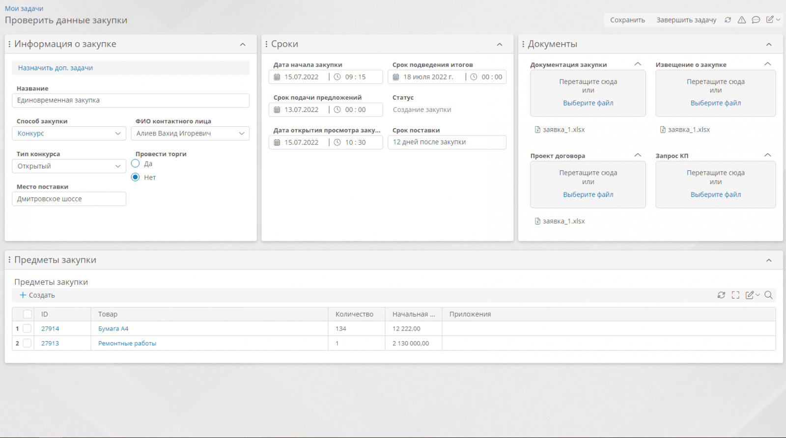 - Заявка может проходить через комиссию, которая проверяет экономическую обоснованность крупных заказов.