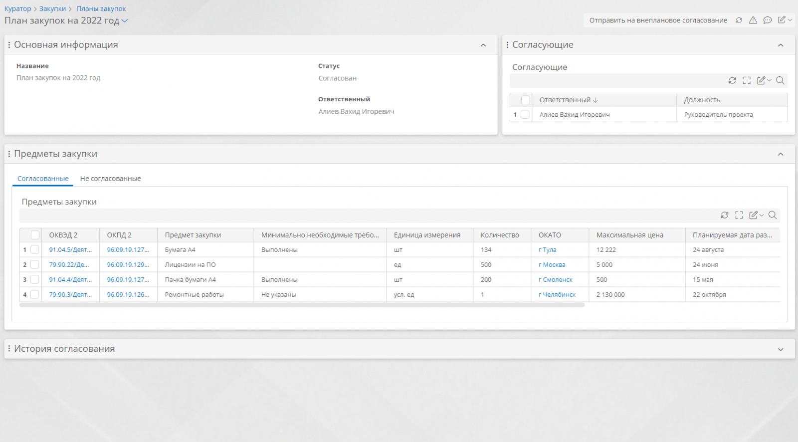 - Заявки могут включаться в разные планы: годовые, пятилетние, по категориям продукции.