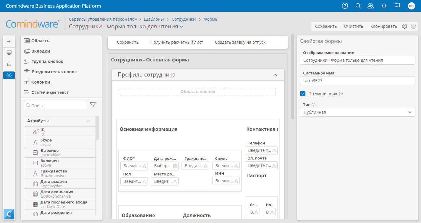 Решение для управления человеческими ресурсами на базе Comindware Business Application Platform